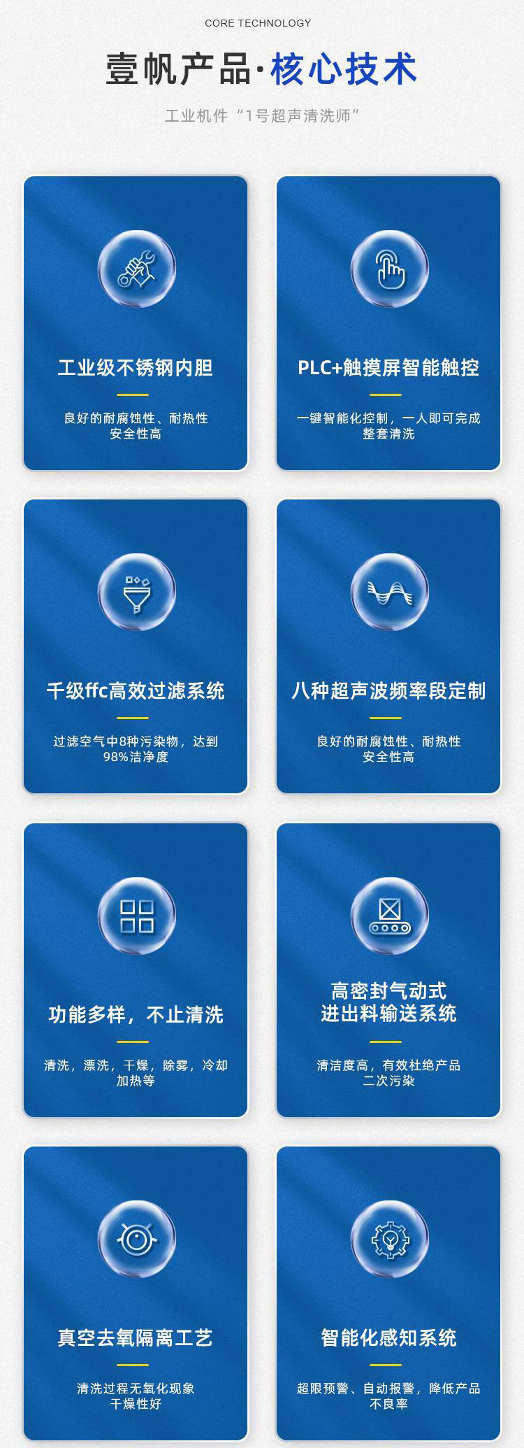 超声波清洗:超声波清洗适用于各种材料和复杂形状的物体,包括玻璃、塑料、金属等。它特别适合清洗细小孔隙、内部结构复杂的零件,如电子元件、珠宝和医疗器械。